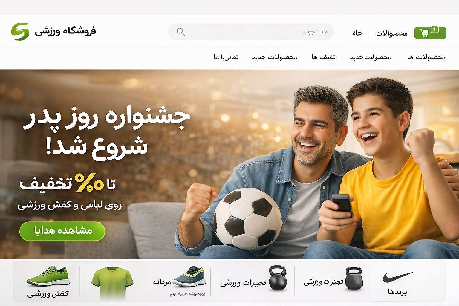 - دکمۀ فراخوان (CTA): یک دکمۀ بزرگ و واضح با متن «مشاهدۀ هدایا» یا «خرید کنید» که مستقیماً به صفحۀ دستهبندی محصولات روز پدر لینک شده است.