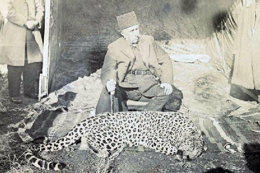 سفر در تاریخ؛ عکس یادگاری شاه قاجار با پلنگی که شکار کرده است!