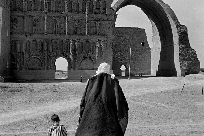 تصویری سیاه و سفید از «ایوان خسرو» یا «طاق کسری» یا «ایوان مدائن» از برجستهترین یادگار شاهنشاهی ساسانی، در تیسفون واقع در کشور عراق کنونی است.