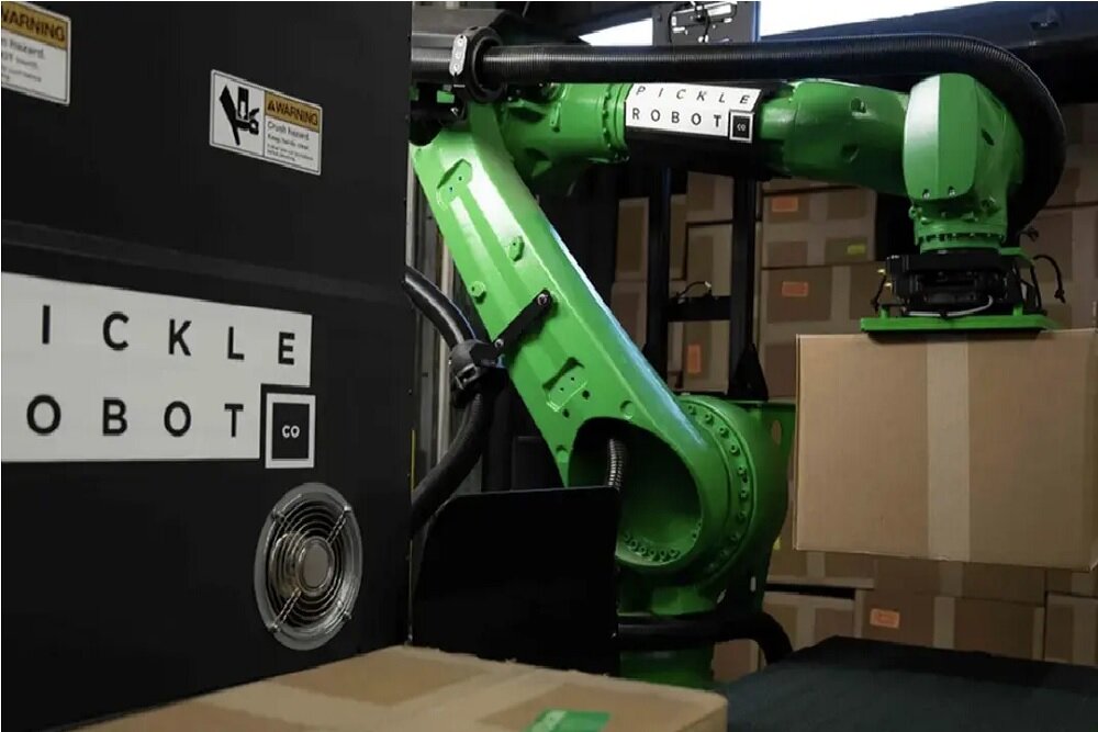 ربات‌های مجهز به هوش مصنوعی شرکت پیکل(Pickle)، یکی از طاقت‌فرساترین وظایف لجستیکی را که تخلیه تریلرهای داغ پر از جعبه‌های سنگین است، بر عهده دارند.