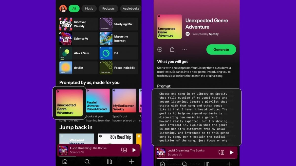 در این ویژگی، کاربر می‌تواند با یک متن کوتاه توضیح دهد که چه نوع موسیقی یا حال و هوا می‌خواهد بشنود و حتی قوانین دلخواهی مانند زمان یا دفعات به‌روزرسانی پلی لیست تعیین کند.